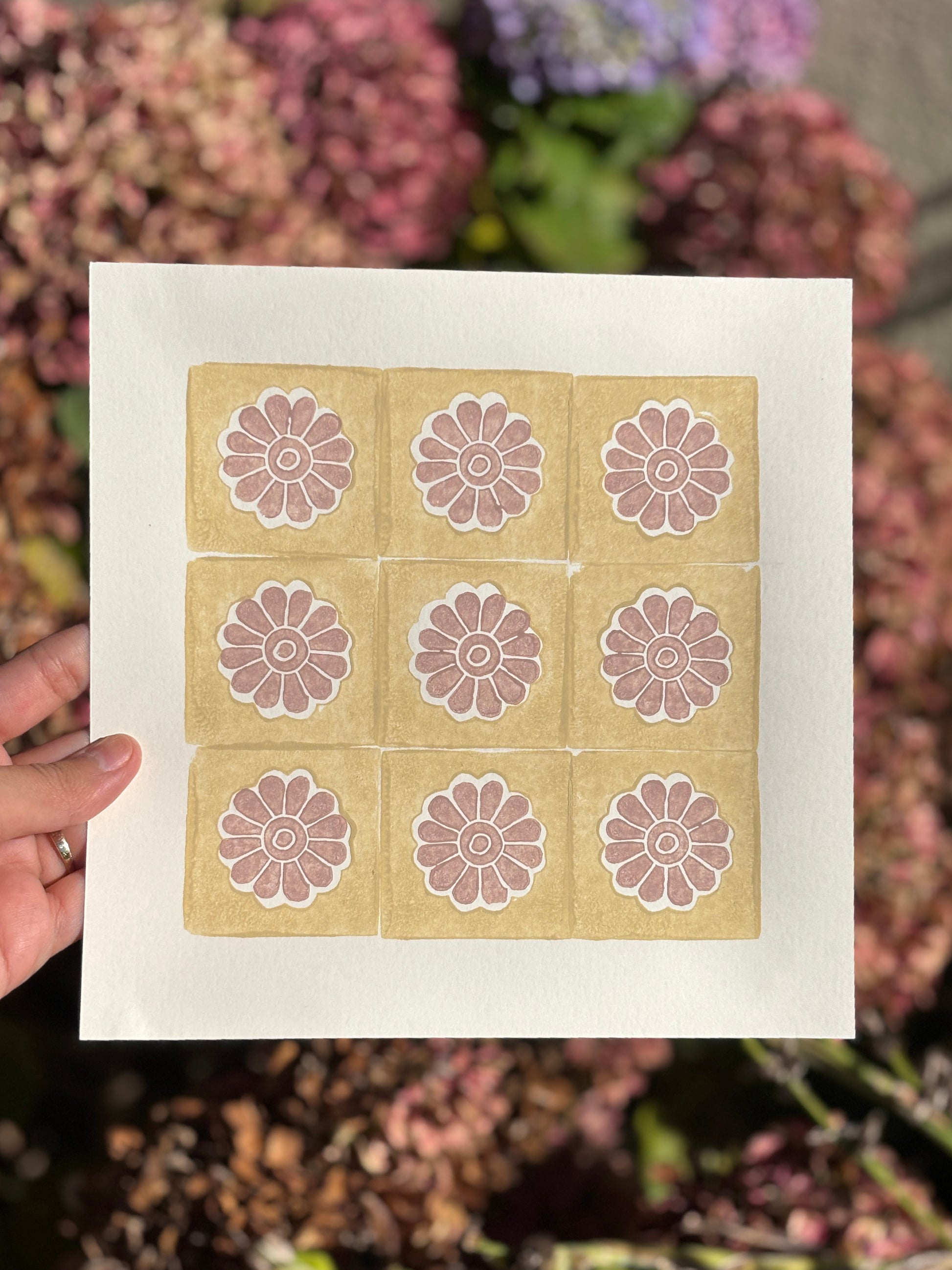 Each piece is hand-printed, signed, and unique. Small variations in color and pattern are part of its handmade and hand-mixed nature.