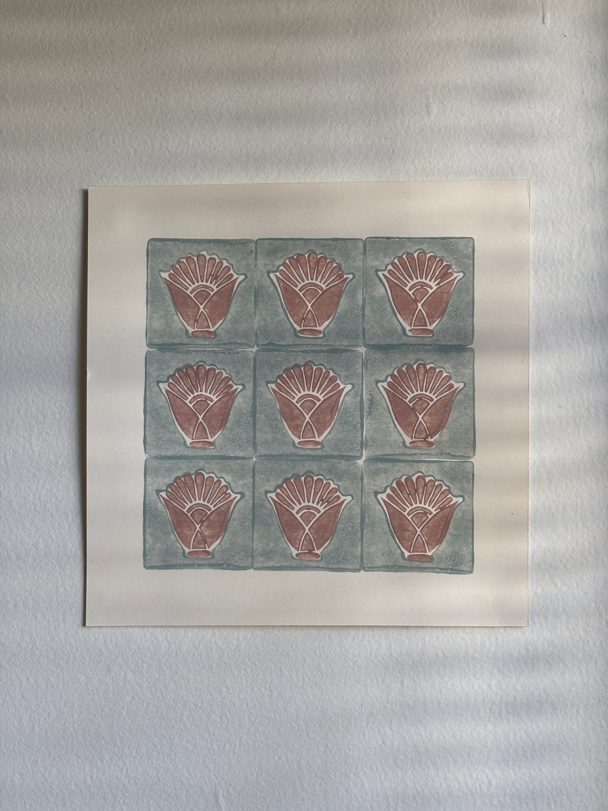 Each piece is hand-printed, signed, and unique. Small variations in color and pattern are part of its handmade and hand-mixed nature.